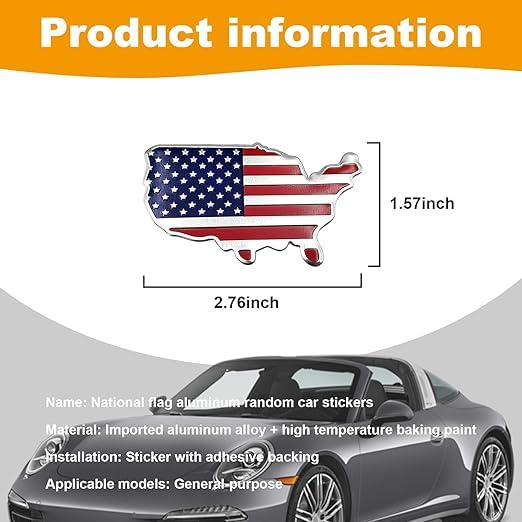 Generic - ملصق معدني ثلاثي الأبعاد بتصميم علم الولايات المتحدة مصنوع من خليط الالومنيوم مناسب للسيارة والشاحنة والنافذة واللابتوب - SACAR