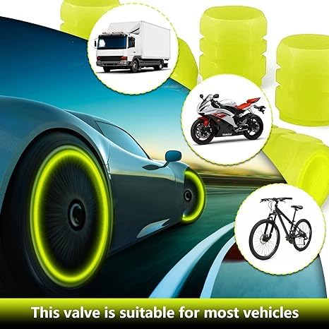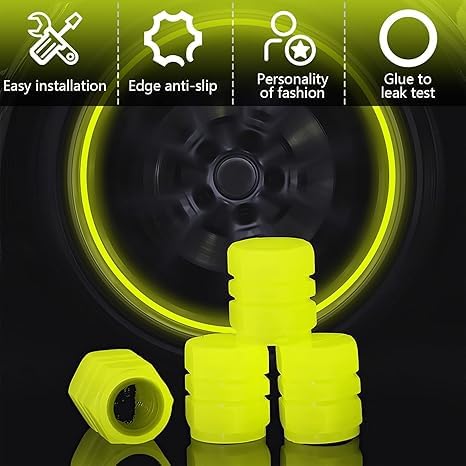 Generic - أغطية صمامات اطار السيارة والمتوسيكل - تتوهج في الظلام - غطاء بلف السيارة والمتوسيكل فسفوري ذاتي الاضاءة في الظلام - غطاء بلف عجلة السيارة تضيئ تلقائي في الليل- (لون أصفر) 4 قطع - SACAR