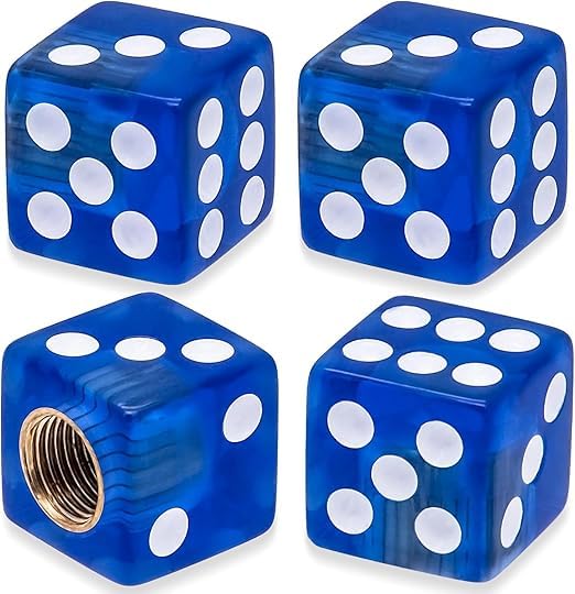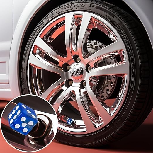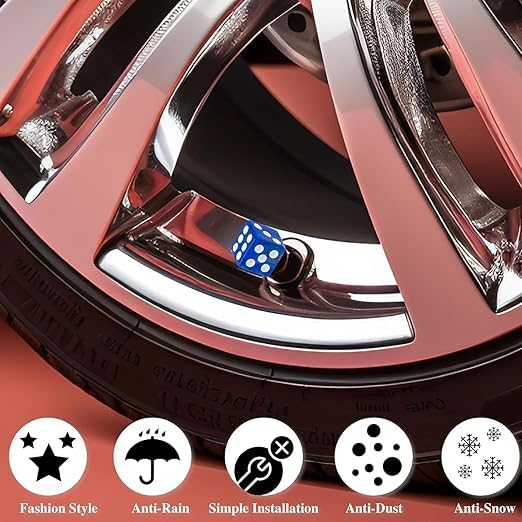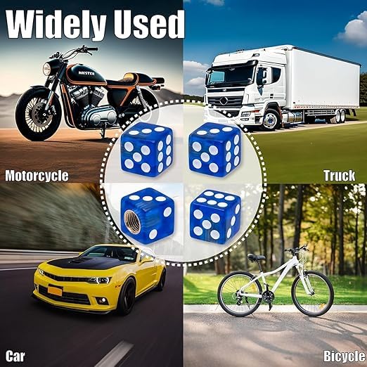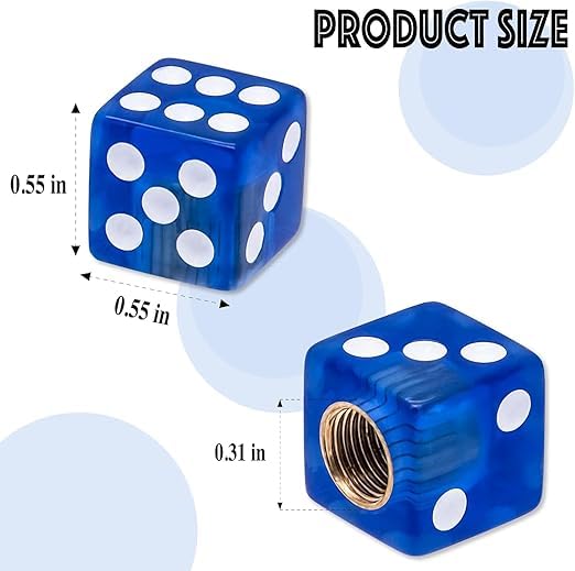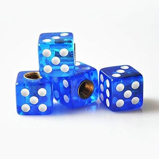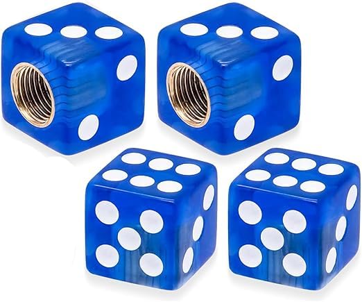 Generic - طقم غطاء بلف صمام اطارات السيارات على شكل نرد للسيارات والدراجات النارية والشاحنات والدراجات، غطاء عالمي للحماية من الغبار والاتربة - عدد 4 قطع لون ازرق - SACAR