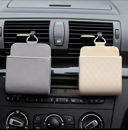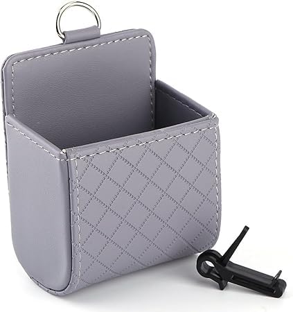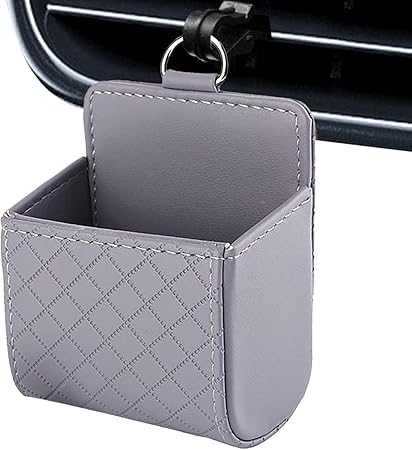 Generic - منظم فتحات التهوية في السيارة، جراب داخلي خلفي لمقعد السيارة مزود بخطاف، صندوق تخزين بمخرج للتعليق، للموبايل الذكي، النظارات، الاقلام، العملات المعدنية ( رمادى - قطعة واحدة ) - SACAR