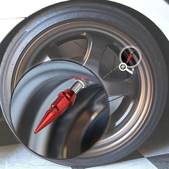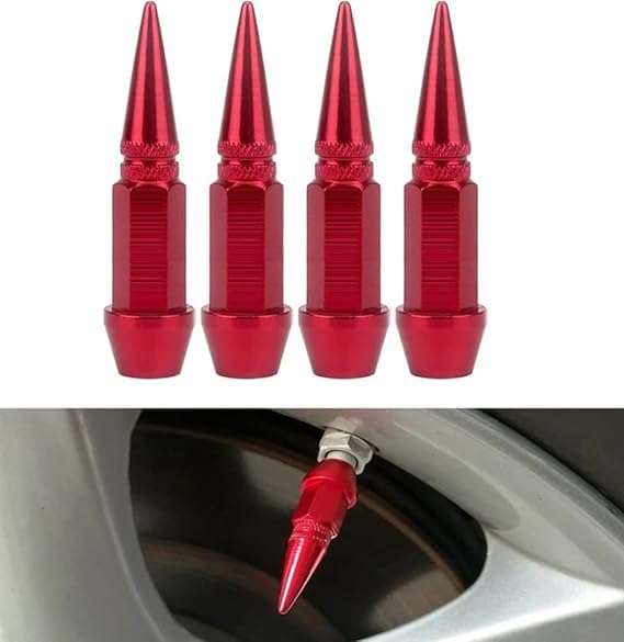 Generic - طقم اغطية بلف صمام اطار السيارة من الالومنيوم بنمط مسامير طلقة للدراجات النارية والسيارات - مقاس طويل طول 6 سم - لون احمر - SACAR