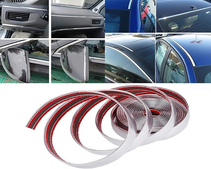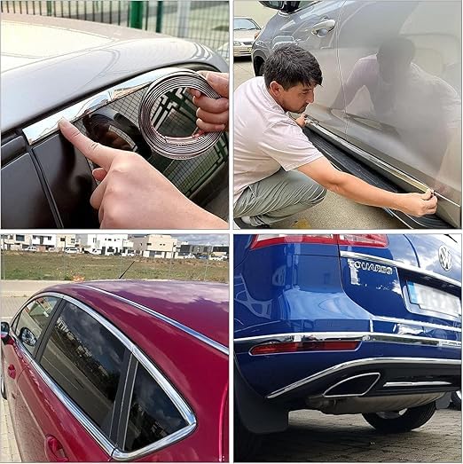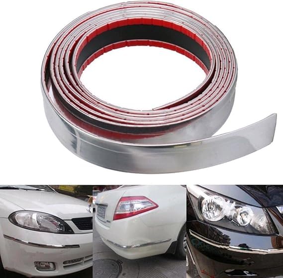 - شريط لاصق حلية لتزيين السيارة ، يمكنك استخدامه بسهولة، مصنوع من الكروم وبلاستيك بي في سي، مناسب لتزيين وحماية الجزء الخارجي من السيارة مثل النافذة، والاكصدام، والشبكة.