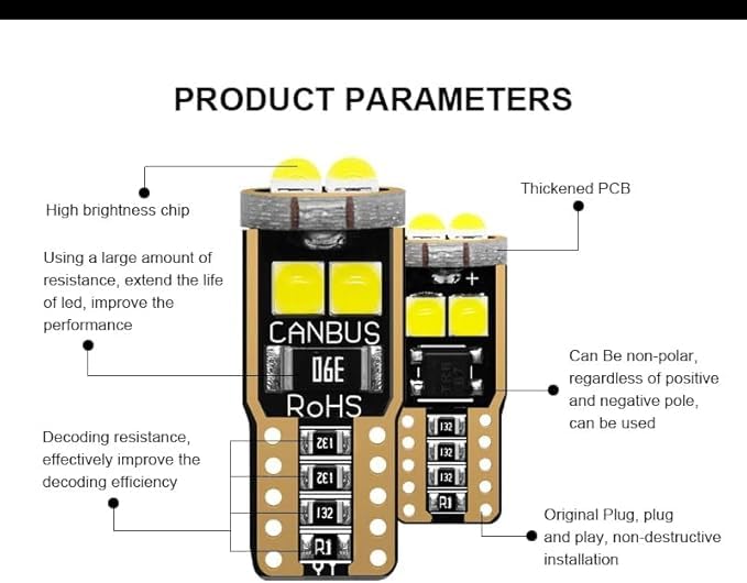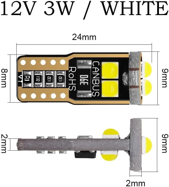 Generic - مصابيح LED SMD T10 قاعدة اسفينية لمصباح وقوف السيارة/ مؤشر جانبي/ مصابيح لوحة ارقام ( اضاءة ابيض ، 2 قطعة) - SACAR