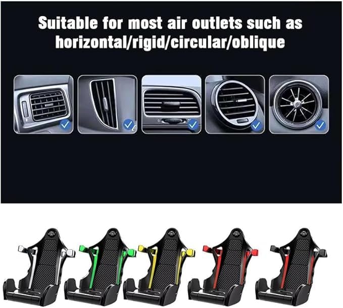 - ✅حامل هاتف للسيارة بتصميم مقعد سباق رياضي. يتميز بتصميم يشبه مقعد السيارة الرياضي .