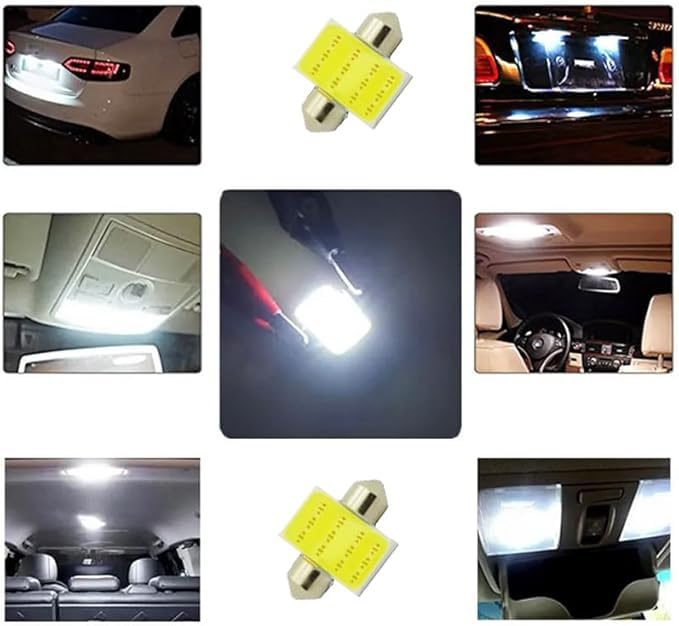 - ✅أضف إحساسًا رائعًا ورومانسية - تتميز مصابيح ليد T11 COB بتوهج ناعم ودافئ يضيء منطقة كبيرة إلى حد ما. هذه المصابيح مثالية للاستخدام في مجموعة متنوعة من تطبيقات السيارات مثل أضواء ركن السيارات وأضواء الزينة وأضواء القبة وأضواء الخرائط وأضواء لوحة القيادة ومصابيح صندوق السيارة. خيار مثالي لاستبدال مجموعة متنوعة من مصابيح الهالوجين التقليدية أو المصابيح المتوهجة المتضمنة