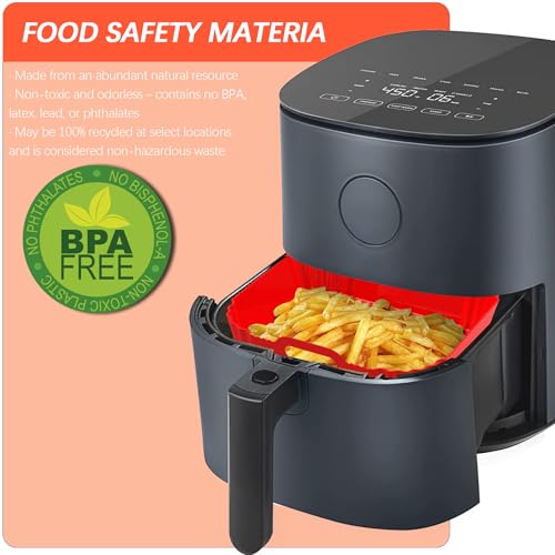 - عبوة من 3 قطع من بطانة القلاية الهوائية القابلة لإعادة الاستخدام: تحتوي بطانات القلاية الهوائية المصنوعة من السيليكون على 3 ألوان (أسود وأزرق وأحمر)، المقاس 22 × 6 سم، مناسبة للقلايات الهوائية من 4 إلى 7 لتر. نصائح: يرجى التحقق من مقاس القلاية الهوائية قبل الشراء.