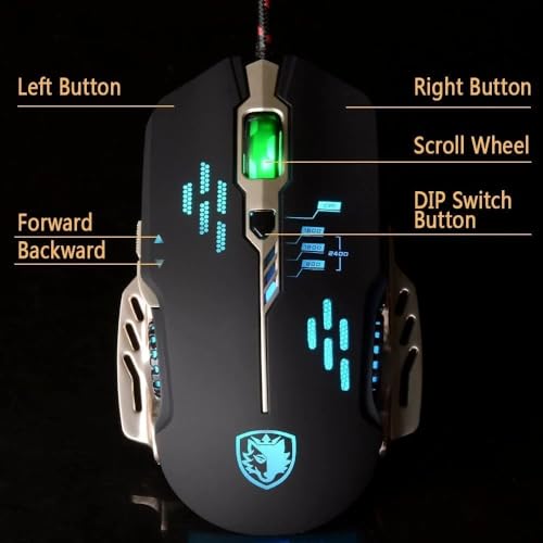 Generic - ماوس ألعاب بإضاءة ار جي بي أنيق ومريح، مستشعر ليزر عالي الدقة مع إمكانية تعديل حساسية DPI من سادس