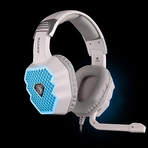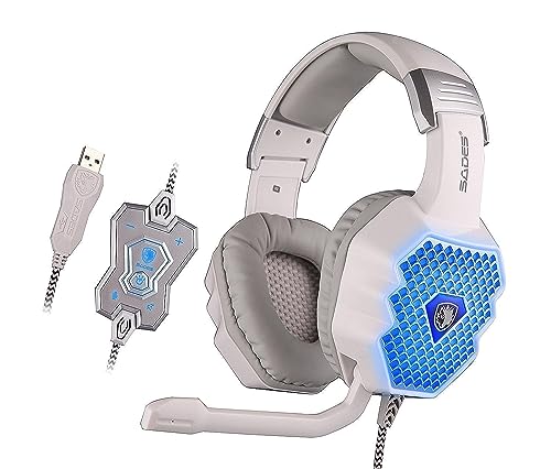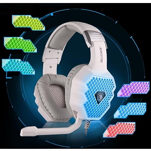 SADES - سماعة رأس a70 فوق الاذن مطورة للالعاب من سادس بمنفذ USB وميكروفون وخاصية التحكم في الصوت وتقنية خفض الضوضاء واضاءة ليد لحظية للاعبي العاب الكمبيوتر، سلكي، متعدد الألوان