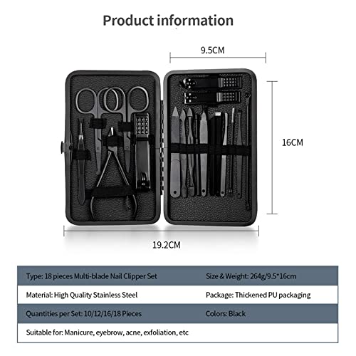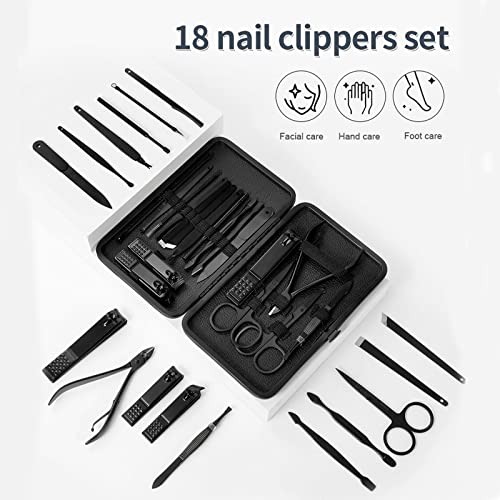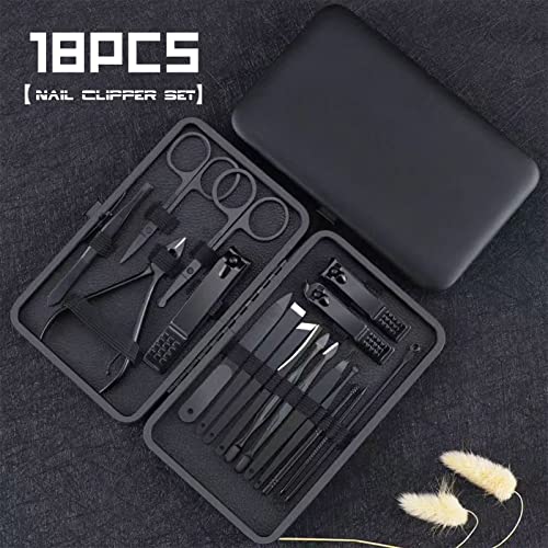 Sadodo - مجموعة مانيكير احترافية وباديكير، قصافة أظافر ومزيل الزوائد الجلدية، ادوات للنساء من سادودو، لون أسود رويال، 18 قطعة