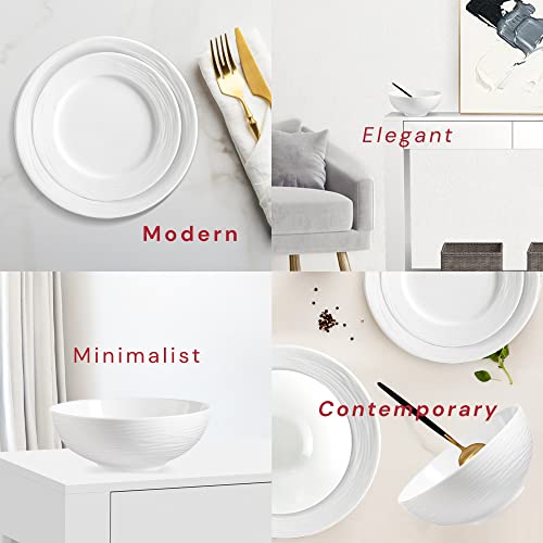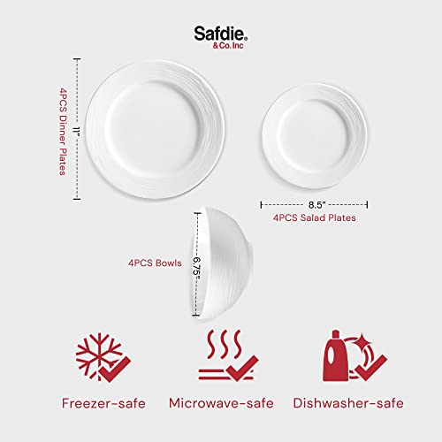 Safdie - صفدي وشركاه مجموعة أدوات مائدة من البورسلين الأبيض مكونة من 12 قطعة، تتضمن 4 أطباق عشاء و4 أطباق سلطة و4 أطباق عميقة آمنة للاستخدام في غسالة الصحون والميكروويف