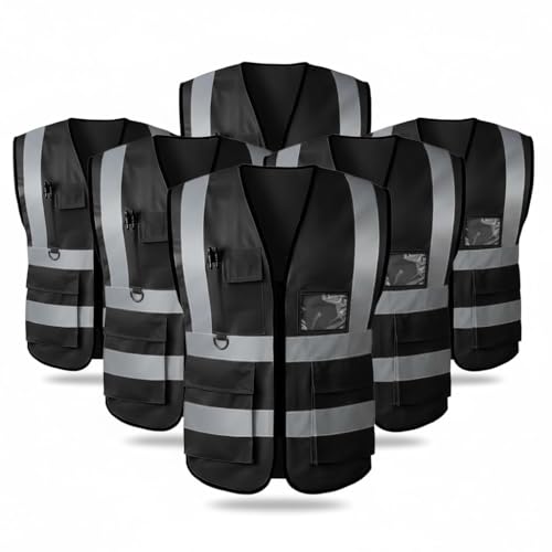 Generic - سترة سوداء عالية الوضوح من سيفتي لاين، ملابس عمل عاكسة للضوء، جيوب متعددة، شرائط رمادية، 3XL، عبوة من 6 قطع