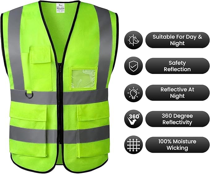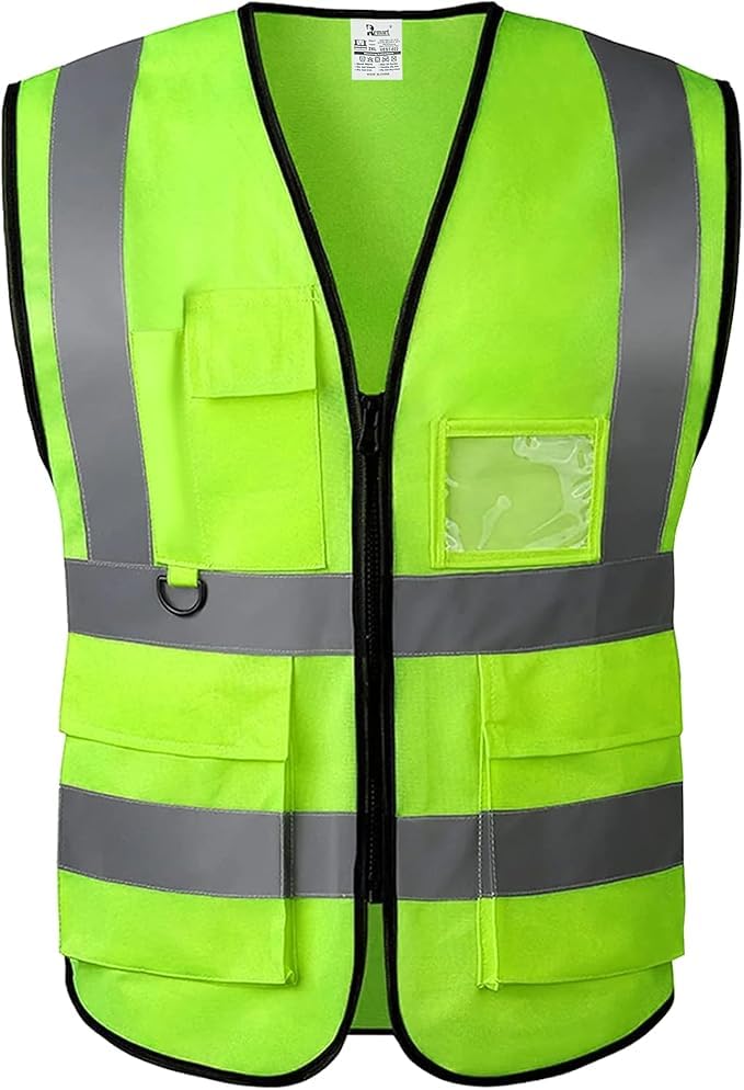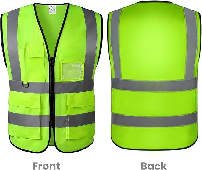 Generic - سترة عاكسة عالية الوضوح من سيفتي لاين، 5 جيوب، سحاب امامي، لون اخضر نيون، مقاس 3XL