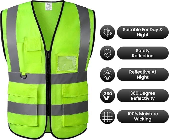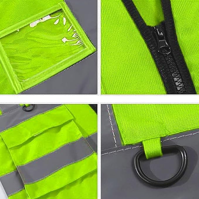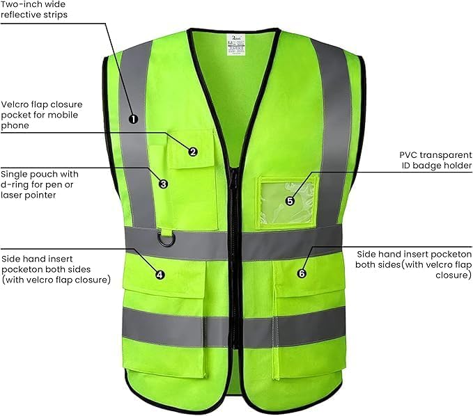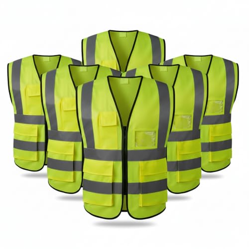 Generic - سترة عاكسة عالية الوضوح من سيفتي لاين، اخضر نيون، 5 جيوب، سحاب امامي، عبوة من 6 قطع