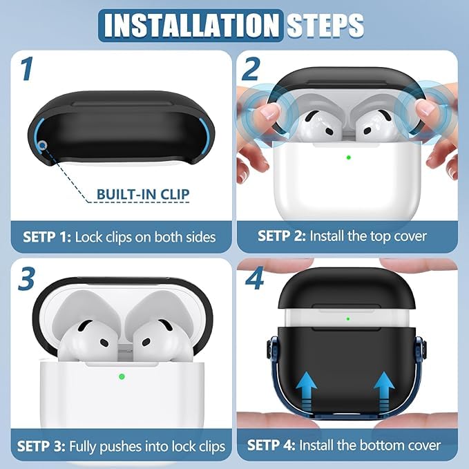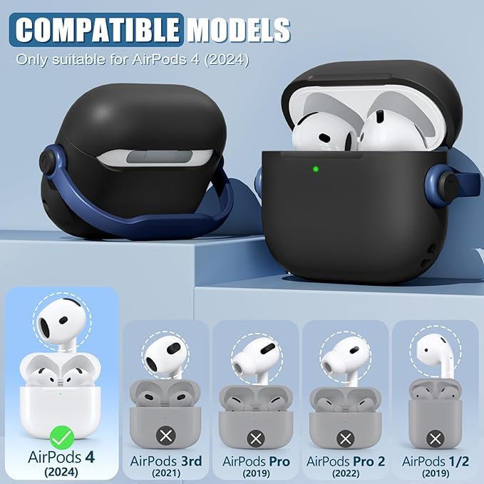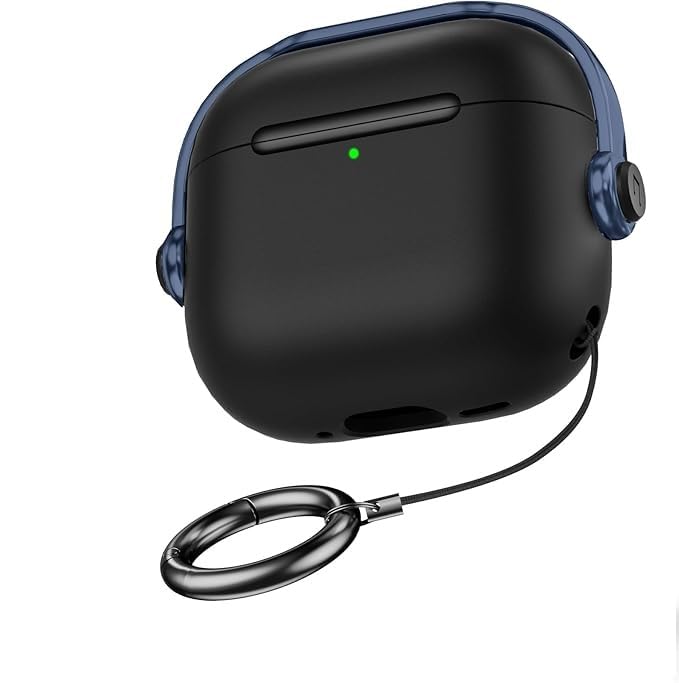 Generic - حافظة حماية من البولي يوريثين الحراري مع قفل أمان لسماعات ابل ايربودز 4 (2024)، حافظة حماية من السقوط لسماعات ايربودز 4 مع قفل وسلسلة مفاتيح للرجال (لون أسود/ أزرق)