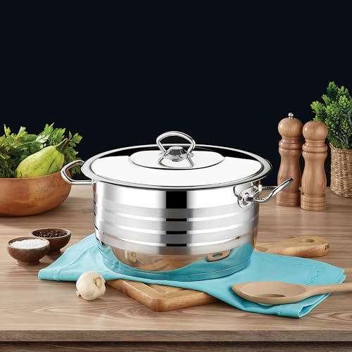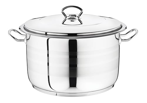 Safinox - قدر طبخ من سافينوكس، مصنوع من الفولاذ غير القابل للصدأ، لون فضي بتشطيب مصقول، مع مقبضين. يتميز بحواف سهلة الصب وقاعدة ثلاثية الطبقات موزعة للحرارة ومقابض باردة. قطعة واحدة