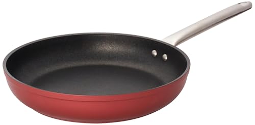 SAFLON - طاسة قلي بمقبض من الفولاذ المقاوم للصدأ بطلاء مانع للالتصاق بلون أحمر، 32 سم