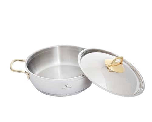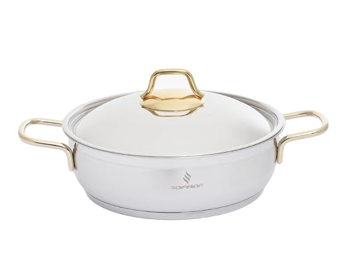 Safram. - صينية خبز من الفولاذ المقاوم للصدأ بغطاء بسطح مانع للانزلاق للتحميص من سافرام، لون ذهبي، مقاس 26 سم