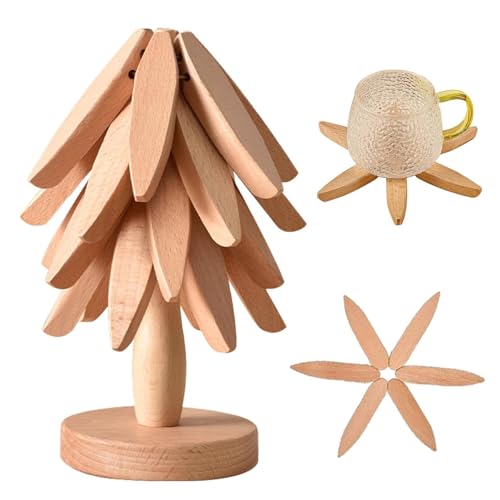 - 【مجموعة مفارش طاولة معزولة على شكل شجرة】المفارش المعزولة مصنوعة من الخشب وتتضمن 4 مفارش وحامل واحد لمنع تلف أسطح الطاولات وأسطح الطاولة. ستزين مجموعة السجادة العازلة للحرارة سطح مطبخك بشكل جميل مثل شجرة الكريسماس. يعد ملحق المطبخ الفريد هذا هدية خشبية فريدة من نوعها.