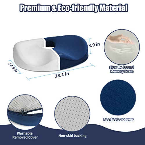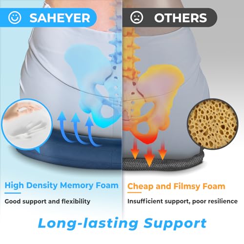 SAHEYER - مخدة بتصميم دونات لتخفيف آلام عظم الذنب والبواسير، من فوم ميموري لعلاج عرق النسا، وسادة جلوس للركبة والأرداف للجنسين للمنزل والمكتب والسيارة، لتوفير راحة أثناء الجلوس لفترات طويلة من ساهير، أزرق