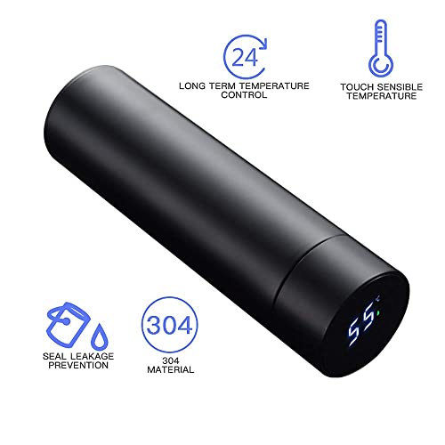 Spaceshoop - ترمس حراري معزول بجدار مزدوج من الستانلس ستيل مع شاشة LED لعرض درجة الحرارة ساهجاناند انتربرايزر للمشروبات الساخنة والباردة أسود 500 مل