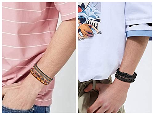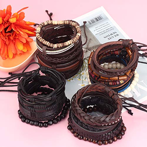 sailimue - مجموعة اساور مضفرة عريضة من الجلد مع خرز خشبي وحبال القنب المنسوجة قابلة للتعديل للرجال والنساء من 25 قطعة من سايليمو, جلد خشب