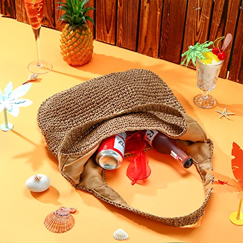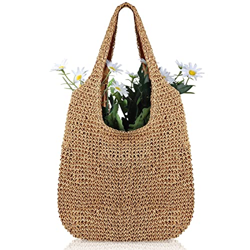 Saintrygo - سان تريجو شنطة شاطئ من القش للنساء، شنطة يد صيفية منسوجة يدويا، شنطة كتف (تصميم انيق، 15.75 × 11.81 × 14.17 انش)