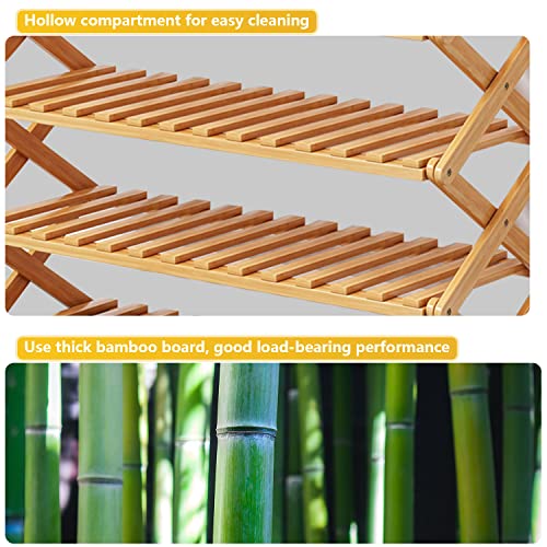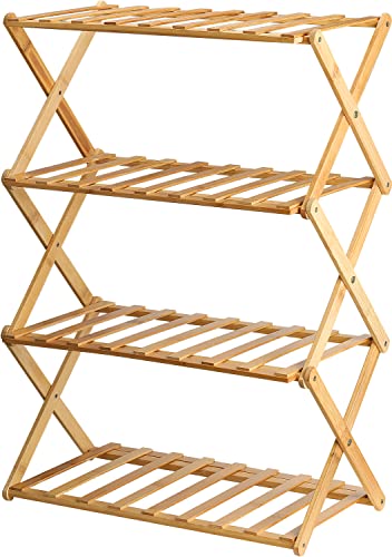 SAISN - رف احذية خشبي من 4 طبقات الخيزران تخزين قابل للتكديس رفوف تنظيم متعددة الوظائف قائم بذاته حامل للطي للمدخل والرواق