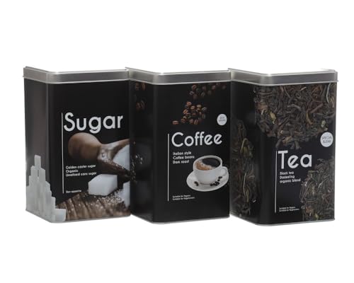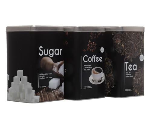 Generic - طقم توابل وشاي وسكر وقهوة من صاج من 3 قطع - لون أسود- هيرنفي
