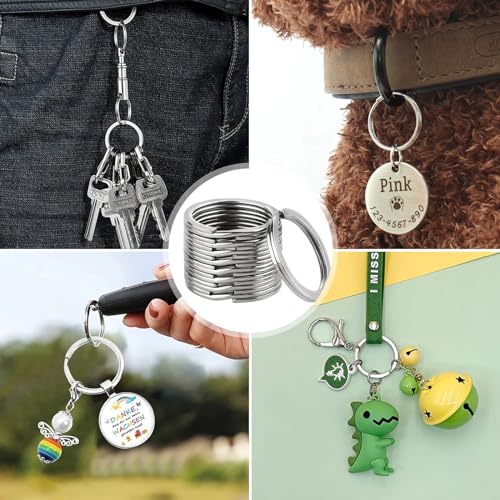 SAKDWUR - حلقة مفاتيح شديدة التحمل 1 انش/25 ملم من ساكدور - 10 قطع من حلقات المفاتيح الدائرية المقسمة، حلقة مفاتيح من الستانلس ستيل، حلقات سلسلة مفاتيح، حلقات مفاتيح لمفاتيح السيارة، حلقات مفاتيح بالجملة، حبل تعليق على شكل كلب يمكنك تركيبه بنفسك