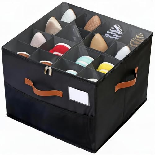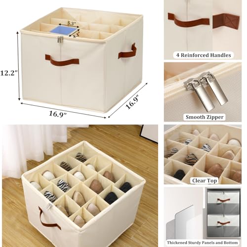 Saklifuo - صندوق تخزين الأحذية، يتسع لـ 16 زوجًا، منظم أحذية قابل للطي مع غطاء شفاف بسوستة، جزامة بفواصل ومقابض قابلة للتعديل، حامل أحذية موفر للمساحة للدولاب ودولاب الملابس من ساكليفو