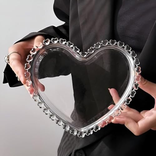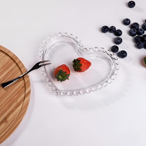 Generic - طبق سلطة - طبق زجاجي بتصميم قلب للفواكه والوجبات الخفيفة، طبق تقديم شفاف قابل لاعادة الاستخدام للحلويات والمقبلات، ادوات مائدة انيقة (خدمة مستطيلة)