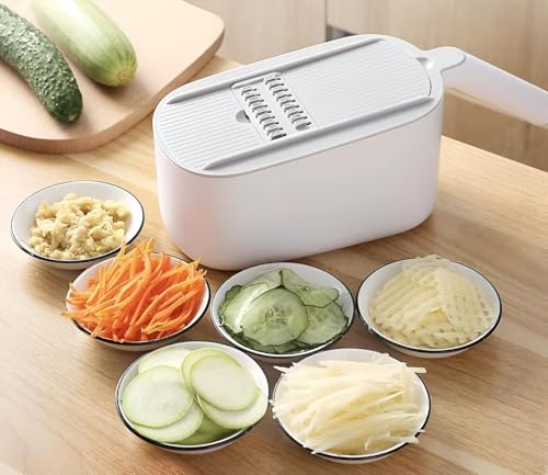 - تجمع هذه القطاعة والمبشرة متعددة الوظائف بين 10 استخدامات مختلفة في أداة واحدة مضغوطة، مما يسمح لك بالتقطيع بسمك مختلف ومكونات البشر والثوم المبشور وحتى إنشاء شبكات بطاطس بسهولة ملحوظة، مما يوفر الوقت والجهد ومساحة التخزين في المطبخ مع جعل الطبخ مهمة ممتعة.