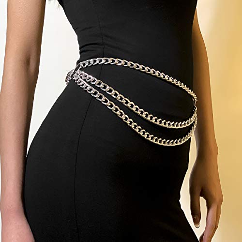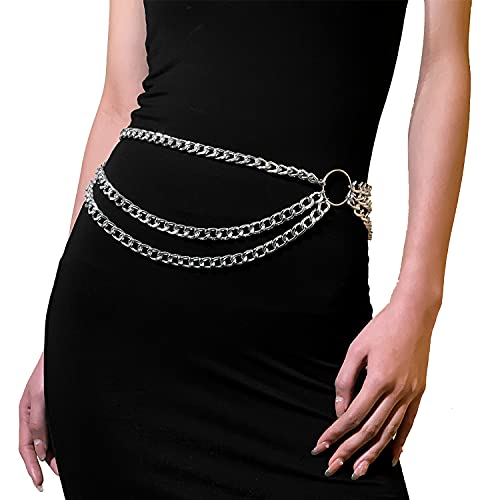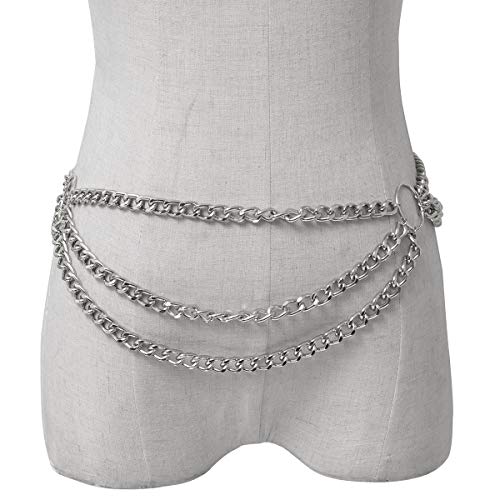 Salircon - سلسلة خصر بسيطة مكونة من 3 طبقات للنساء المثيرات، مجوهرات بشرية للشاطئ، اكسسوارات بطبقات للبطن بلون فضي