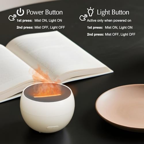 - تصميم أبيض أنيق مع تأثير اللهب: يضفي الجزء الخارجي النظيف لموزع الزيوت العطرية الأبيض هذا إحساسًا بالنقاء والرقي إلى مساحتك. يخلق الضوء الأصفر الدافئ، جنبًا إلى جنب مع الرذاذ، تأثير لهب آسر، مما يضيف جوًا مريحًا ومهدئًا إلى أي غرفة، دون الحاجة إلى لهب حقيقي.
