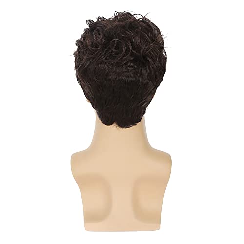 Sallcks - باروكة من شعر صناعي للرجال بتصفيفة كيرلي قصيرة متعددة بلون بني من سالكس، مناسبة لحفلات الهالوين التنكرية