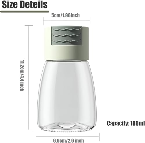 - تتميز مجموعة خلط الملح والفلفل هذه بغطاء بلاستيكي مع آلية زر ضغط توزع 0.5 جرام من الملح لكل ضغطة. يساعد على تنظيم تناول الملح، مما يجعل من السهل التحكم في كمية الملح التي تستخدمها لوجبات صحية.