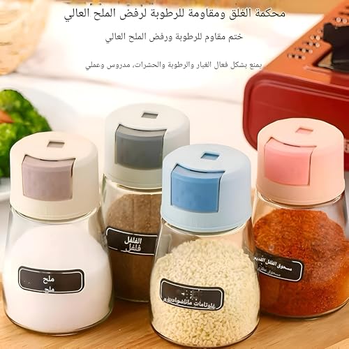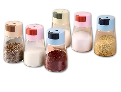 Generic - حاويات ملح وفلفل - زجاج شفاف بتصميم مقاوم للرطوبة، اضغط على زر لجرعة 0.5 غرام، حجم 0.5 غرام، غطاء بلاستيكي، مصممة للتوابل الصحية والتحكم (6 قطع)