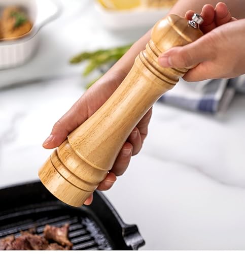 Generic - طقم مطحنة ملح وفلفل - مطاحن خشبية قابلة للتعديل مع فرشاة تنظيف ومغرفة بهارات، 24 سم، مثالي لحفلات العشاء