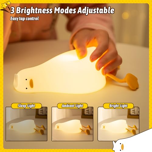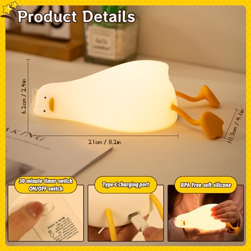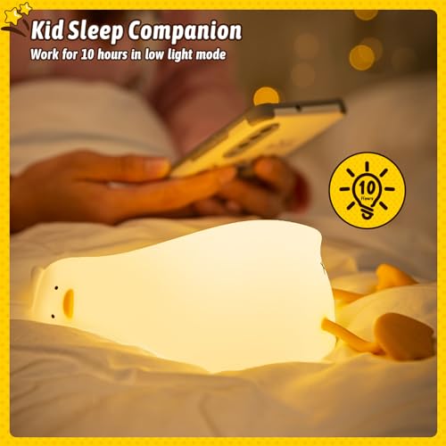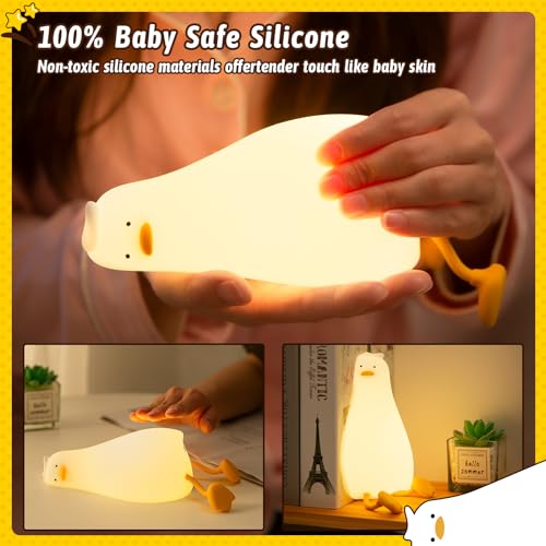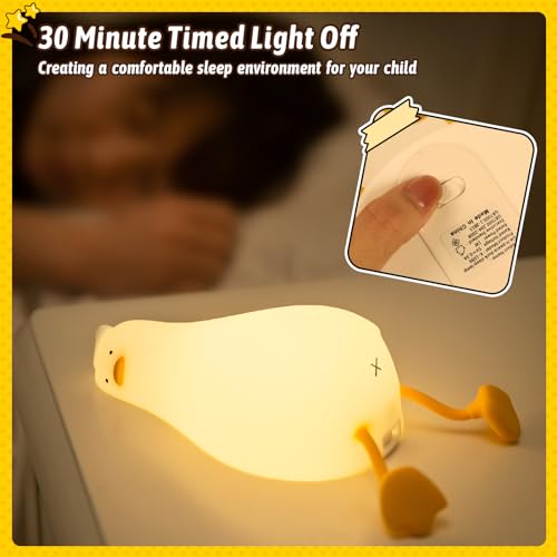 SALUOKE - مصباح ليلي على شكل بطة للأطفال من سالوك: مصباح بطة قابل للتعتيم، مصباح ليلي يعمل باللمس لمدة 30 دقيقة للأطفال، ضوء ليلي سيليكون لاسلكي قابل لإعادة الشحن عبر USB، هدية ديكور للغرفة للأطفال والبالغين