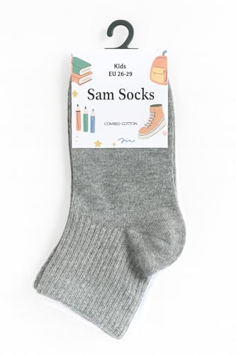Sam socks - سام سوكس طقم شرابات نصف طويلة سادة للاطفال مكون من 3 قطع، لون رمادي، مقاس 26-29 EU