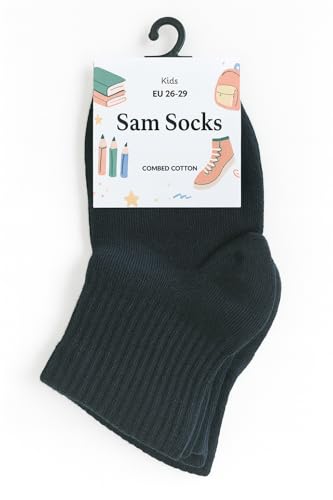 Sam socks - سام سوكس طقم شرابات مدرسية سادة نصف طويلة للاطفال مكون من 3 قطع، لون ازرق كحلي، مقاس 26-29 EU