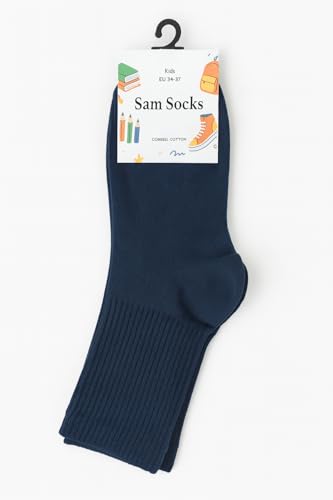 Sam socks - سام سوكس طقم شرابات مدرسية طويلة سادة للاطفال من 3 قطع، لون ازرق كحلي، مقاس 34-37 EU