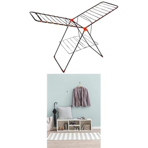 Sama Steel - مجموعة من منشر غسيل تركي ستيل سما اسود+ جزامة دوماني ابيض ss180