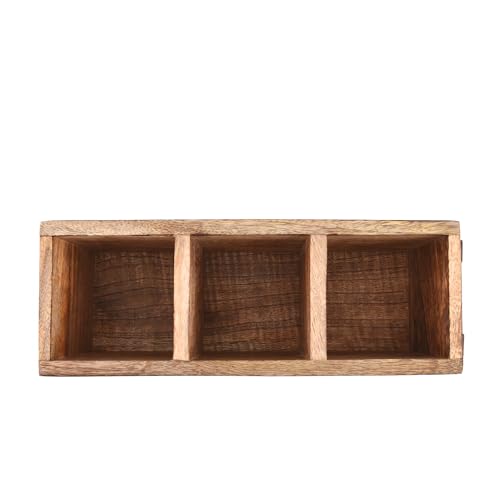 Samhita - سامهيتا حامل ادوات تناول الطعام من خشب المانجو منظم تخزين المائدة الخشبي لسطح الطاولة للشوك والملاعق المسطحة الفضية 3 مساحات 11 انش × 4 4.5 .