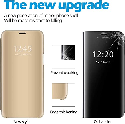 - حافظة بلاستيكية شفافة قابلة للطي مع حامل بدون مستشعر وليست ذكية لهاتف سامسونج A22 شبكة الجيل الخامس 5G ذهبي