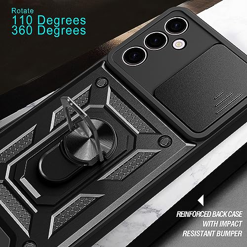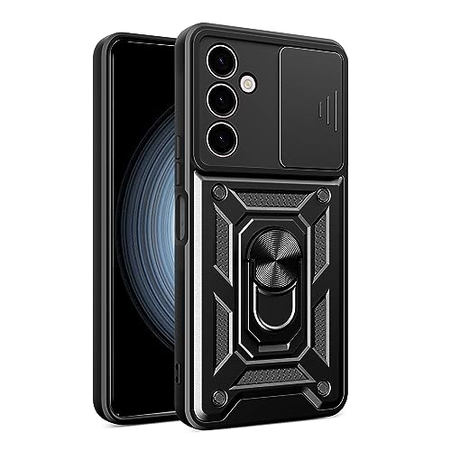 Generic - جراب حماية خلفي مضاد للصدمات مع واقي للكاميرا وحلقة معدنية متوافق موبايل سامسونج جالاكسي A24 A24 لون اسود