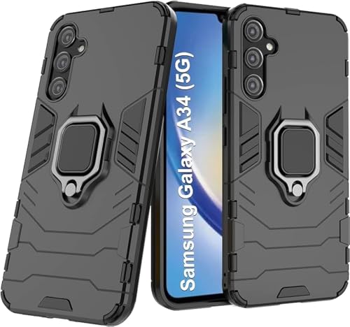 - جراب حماية بحلقة معدنية مضادة للصدمات لموبايل سامسونج جالاكسي A34، لون أسود.