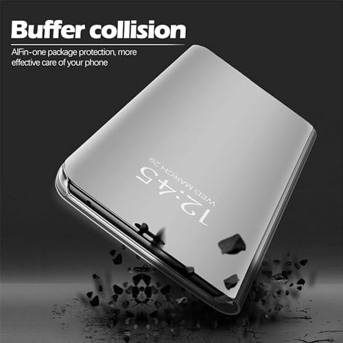 ELMO3EZZ - جراب سامسونج جالاكسي A81 من المو3EZZ بتصميم عاكس شفاف قابل للطي كتاب رفيع للغاية مع مسند لسامسونج M60S - نوت 10 لايت - فضي سيليكون