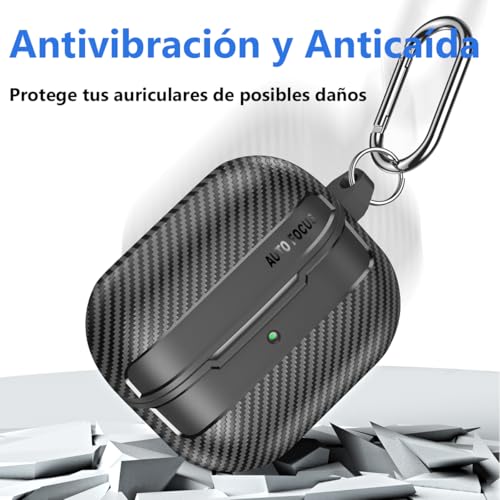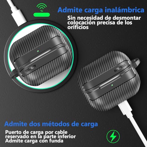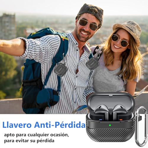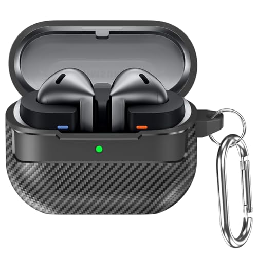 QWYJ - جراب حماية شديدة التحمل لسماعات سامسونج جالاكسي بودز 3/بودز 3 برو من كيو دبليو واي جيه مع حلقة تعليق من ألياف كربونية (أسود)