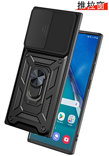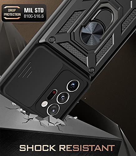 Generic - جراب حماية خلفي مضاد للصدمات مع للكاميرا وقاعدة معدنية في الخلف متوافق موبايل سامسونج جالاكسي نوت 20 الترا اسود